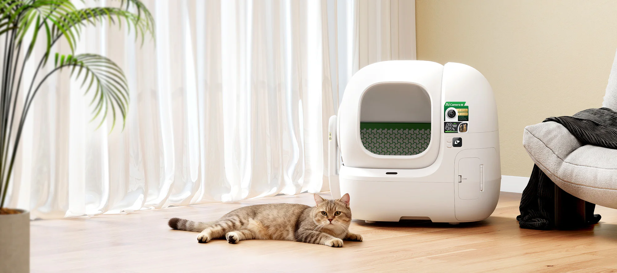 The 100% touch-free auto waste packing self-cleaning litter box with a 180° rotation AI camera to track cat's potty routines and well-being, offering holistic health insights from entry to exit.
