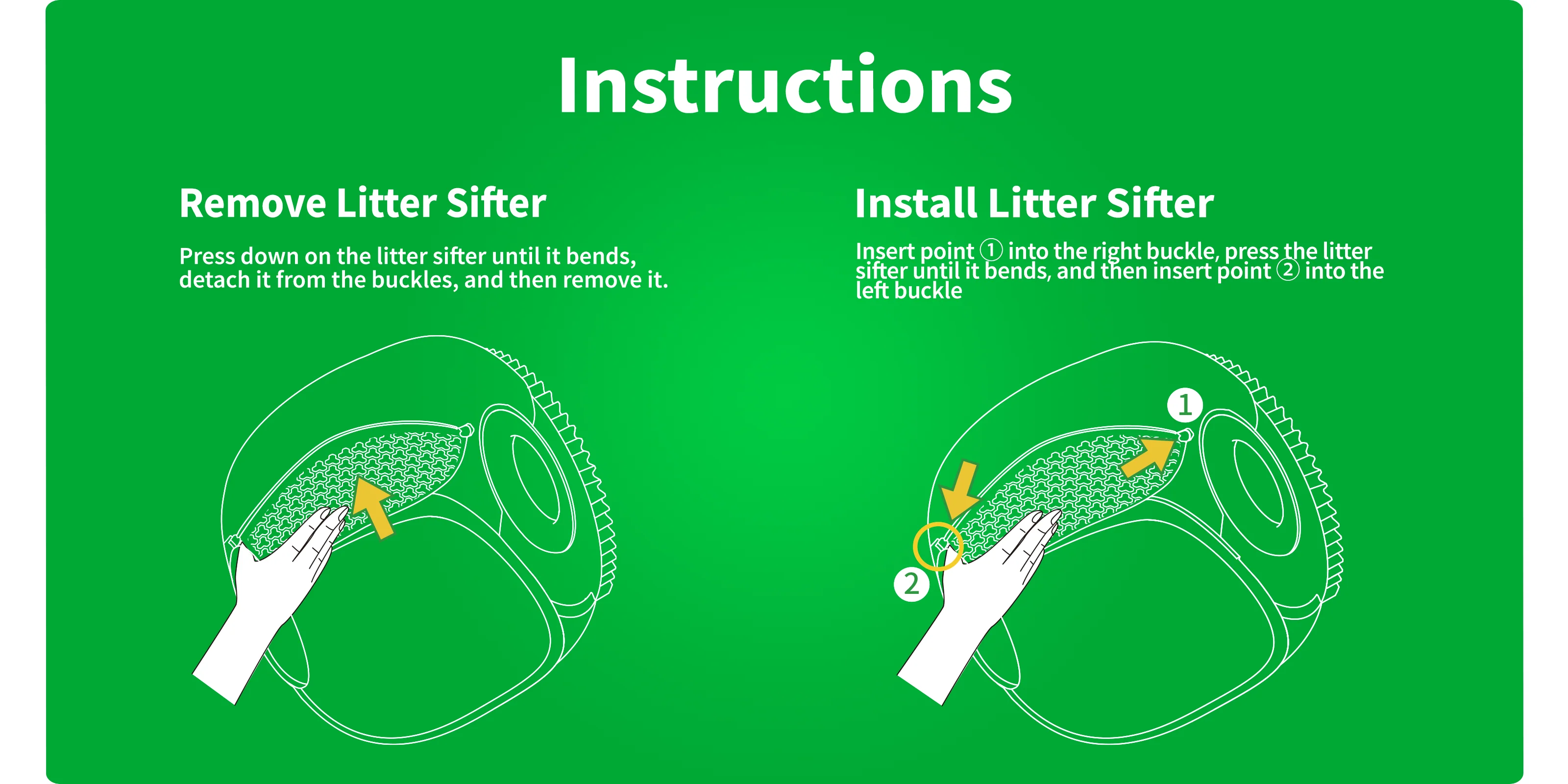 Made of durable and safe material, both the litter remover and litter sifter are washable, making them easy to clean and maintain.