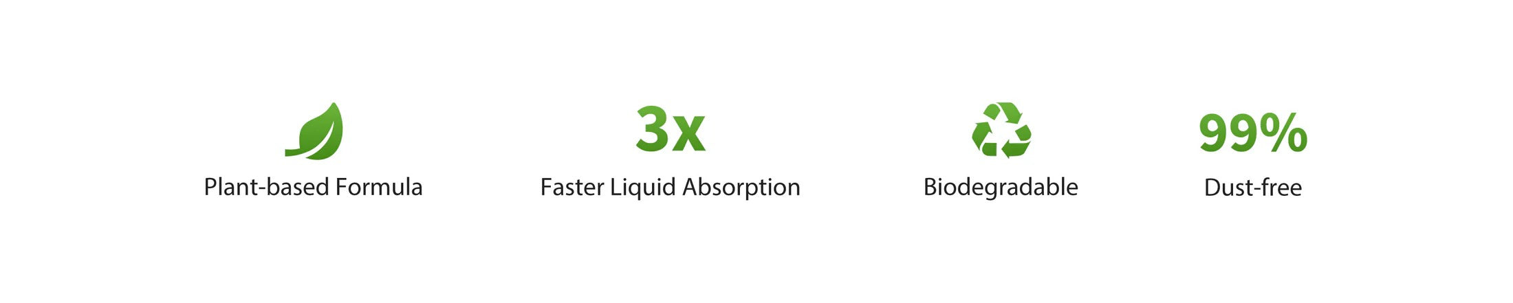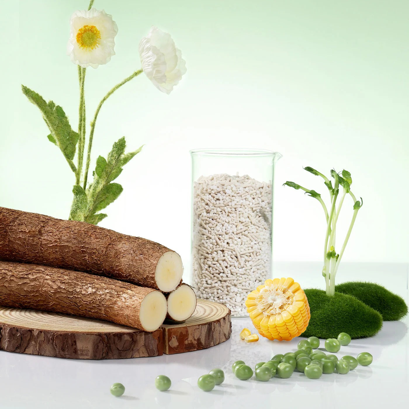 Biodegradable and eco-friendly to the earth. This cat litter is made from all-natural ingredients—corn, pea, cassava, and baking soda—ensuring 100% safe use even if your cat accidentally eats it.