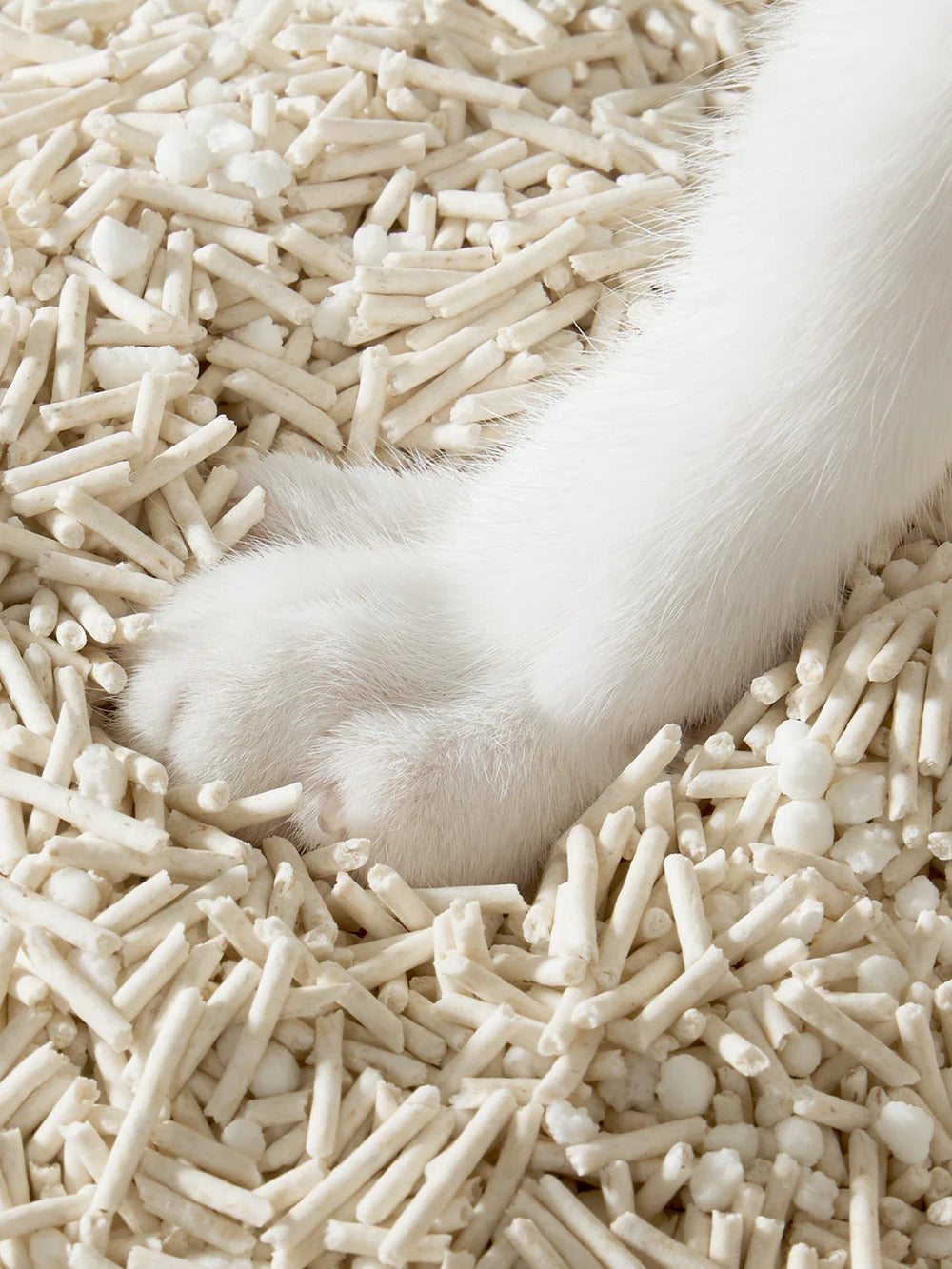 Cassava-based cat litter is less water-soluble compared to other types, so we recommend avoiding flushing it down the toilet to prevent clogging.