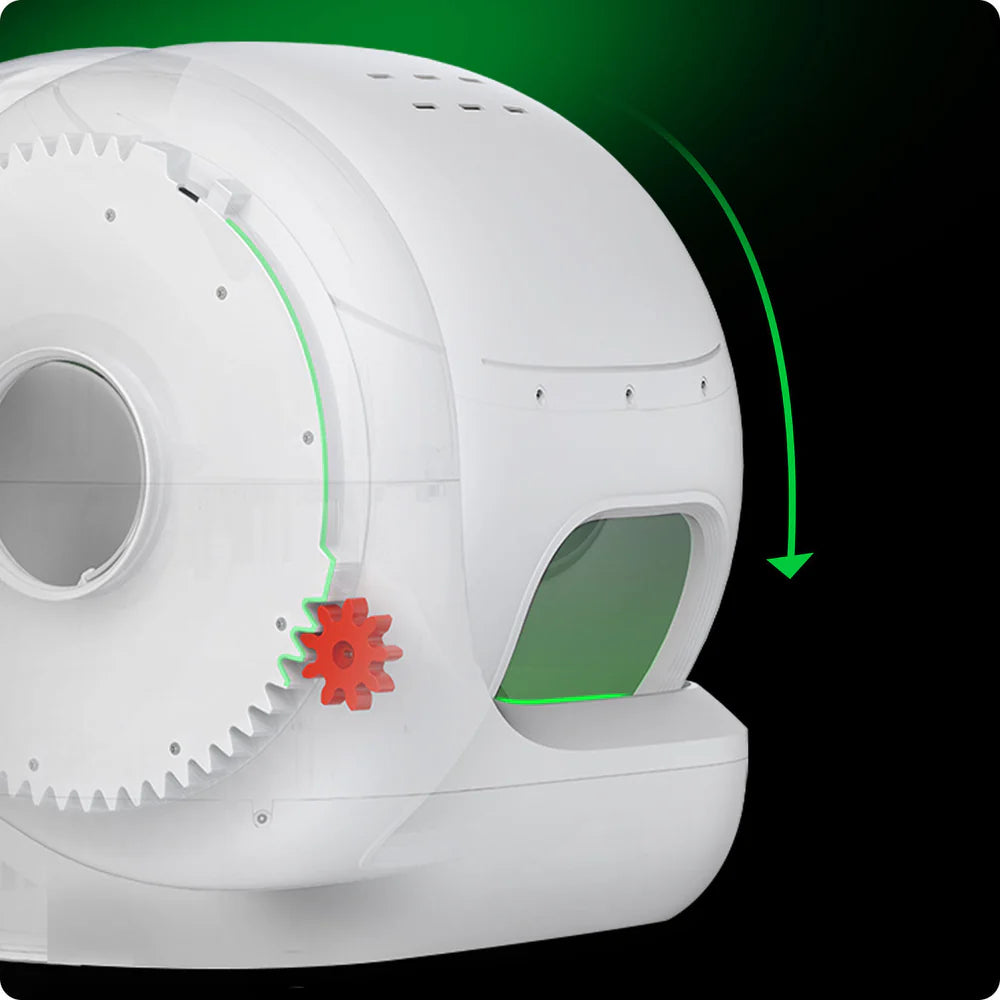 PURAMAX 2 ist mit einer patentierten Einklemmschutz-Konstruktion ausgestattet, die den Eingang jederzeit offen hält, wenn sich der Zylinder in einem bestimmten Winkel dreht. PURAMAX 2 ist mit elf Sicherheitssensoren ausgestattet, darunter fortschrittliche Näherungs- und Gewichtssensoren. Die Katzentoilette stoppt automatisch, wenn sich eine Katze in der Nähe oder im Zylinder befindet. Gewichtssensoren sorgen dafür, dass der Zylinder stillsteht, während sich Ihre Katze im Zylinder befindet, bis sie ihn verlässt.
