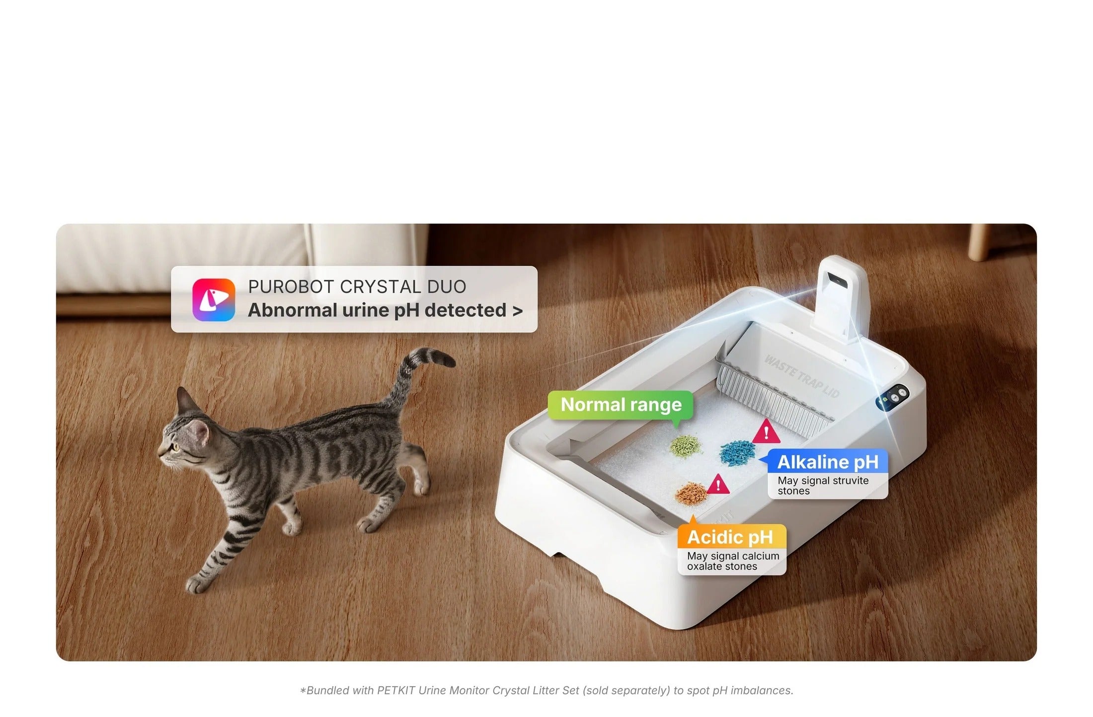 No. Purobot Crystal Duo is only compatible with the PETKIT Crystal Litter Set (including crystal cat litter and litter tray), which absorbs urine and controls odors effectively, allowing pet owners to simply load the litter tray and forget about scooping or cleaning for up to 30 days.