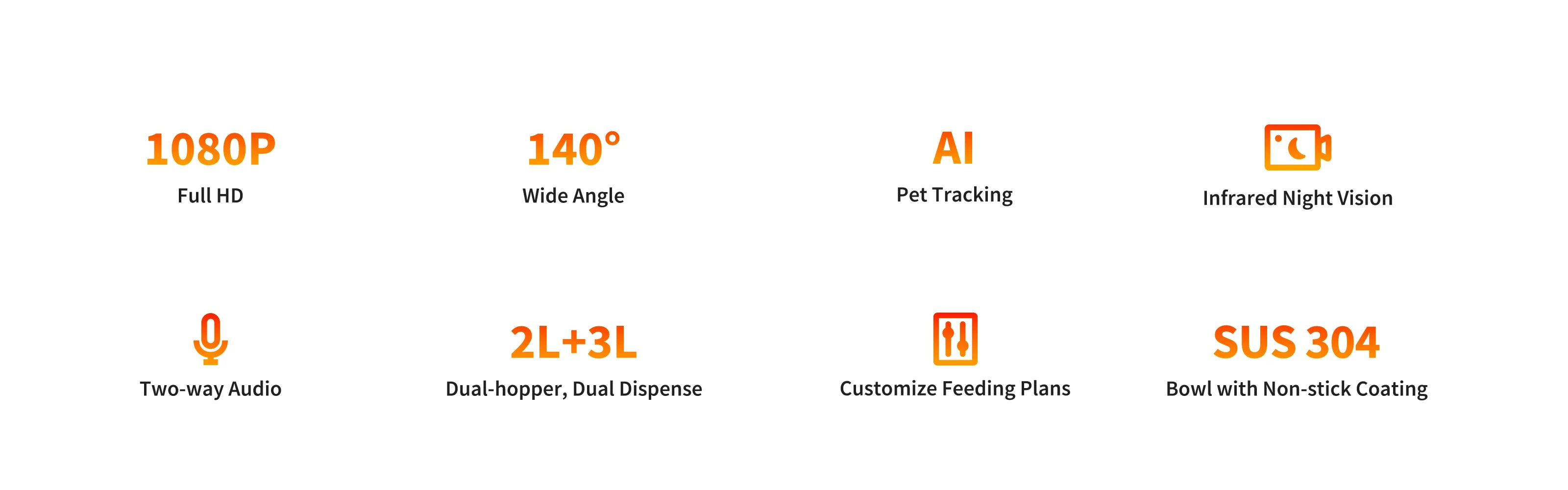 Der verbesserte automatische Futterautomat mit zwei Futtertrichtern erfüllt verschiedene Ernährungsbedürfnisse. Genießen Sie die Freude, jeden schönen Moment Ihres pelzigen Freundes mit der integrierten Kamera festzuhalten.