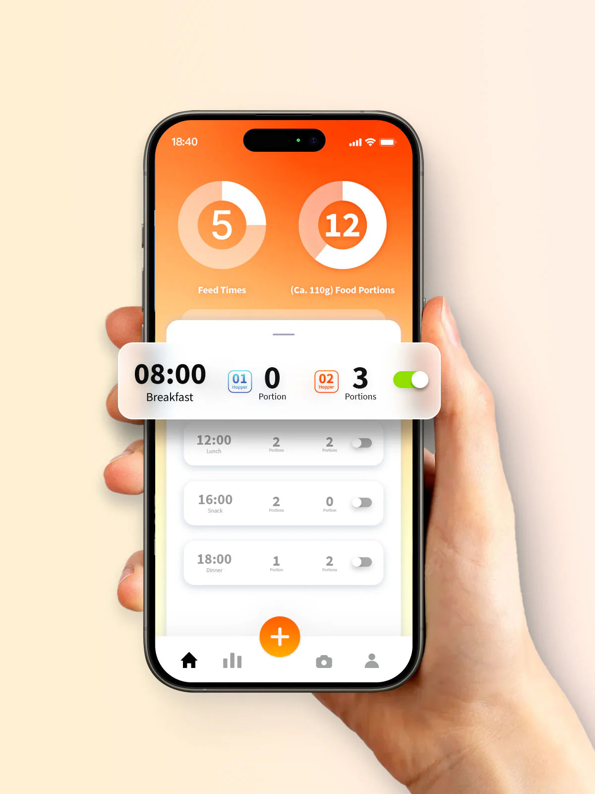 Die Kamera analysiert automatisch das verbleibende Futter im Napf. Sobald die verbleibende Futtermenge den eingestellten Bereich erreicht, stoppt der Futterautomat die Futterausgabe. So wird ein Futterüberschuss vermieden und sichergestellt, dass Ihre Haustiere stets frisches Futter genießen.