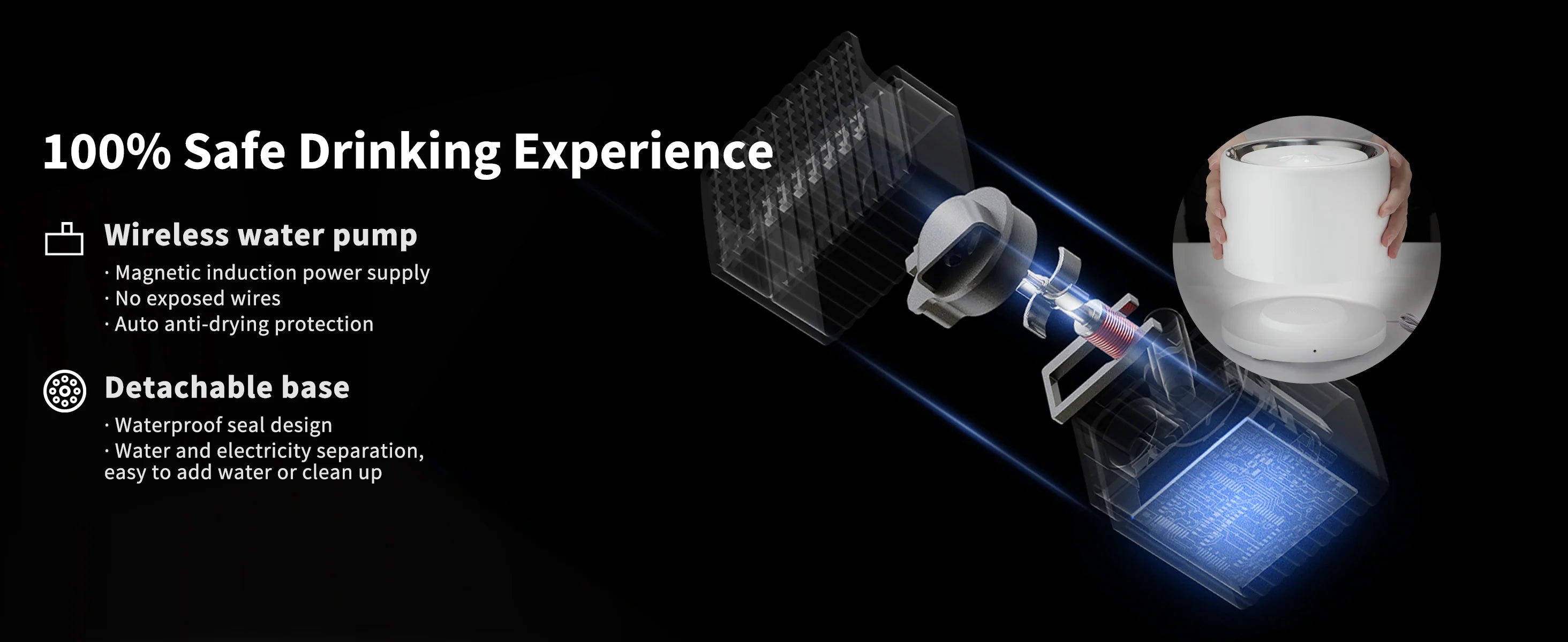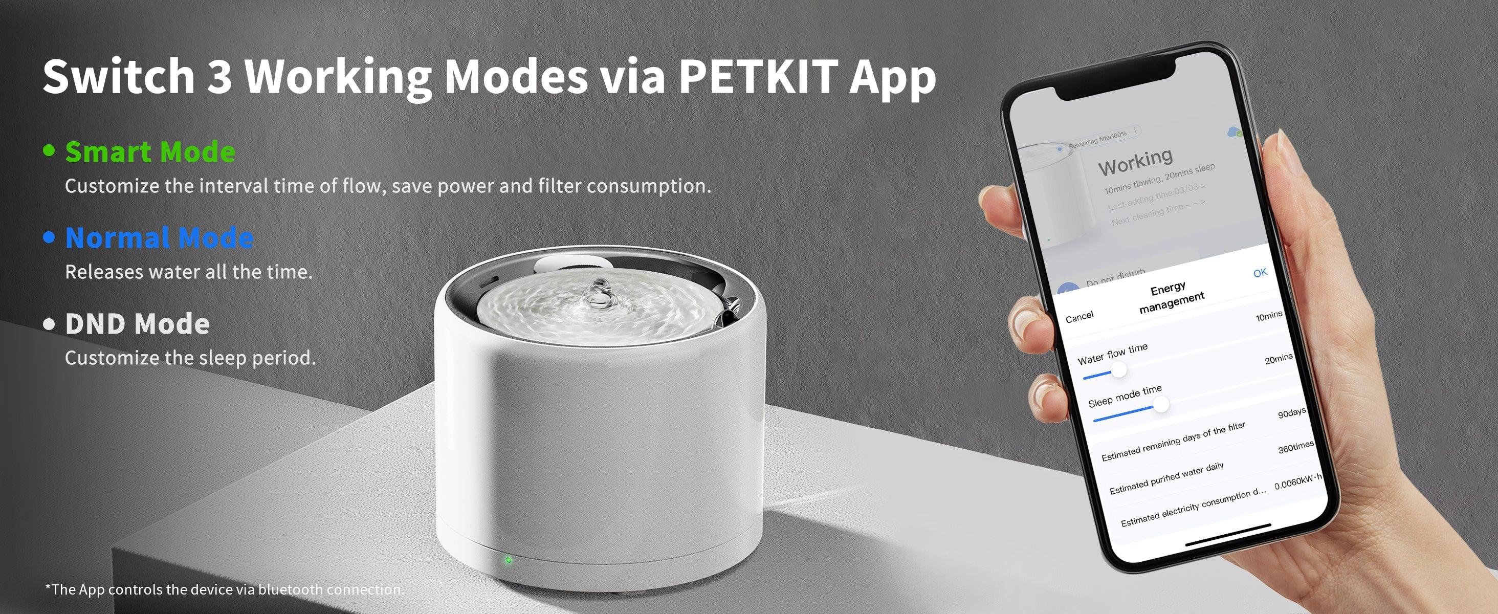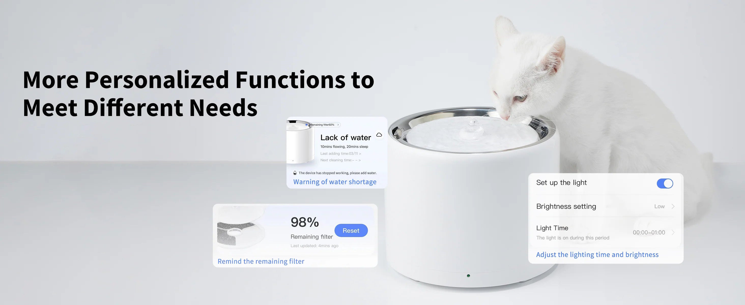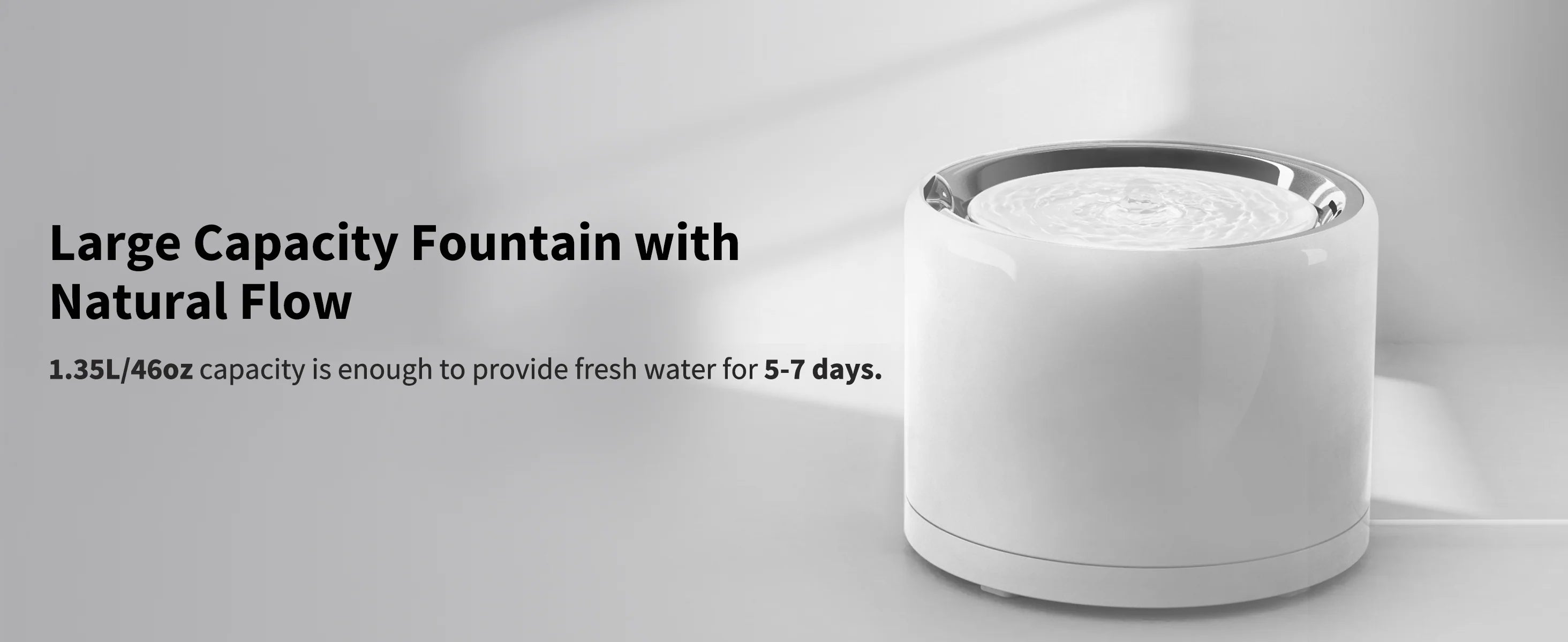 Avec une grande capacité de 1,35 L, l'appareil peut fournir de l'eau fraîche à 1 à 2 chats pendant 5 à 7 jours. La consommation d'eau quotidienne de chaque animal étant différente, la fréquence de remplissage varie.