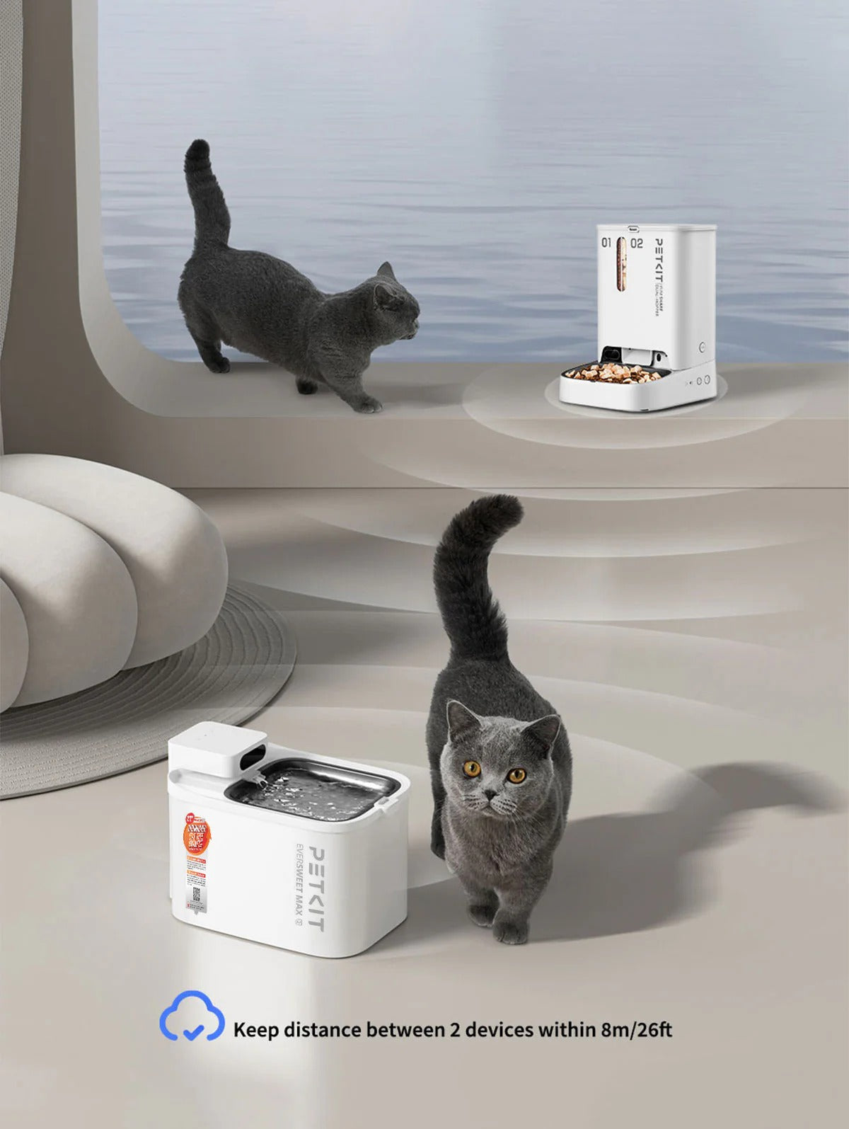 Control the device to monitor the water level and filter life remotely via bluetooth interconnection when you have at least one of the PETKIT products as a master device.