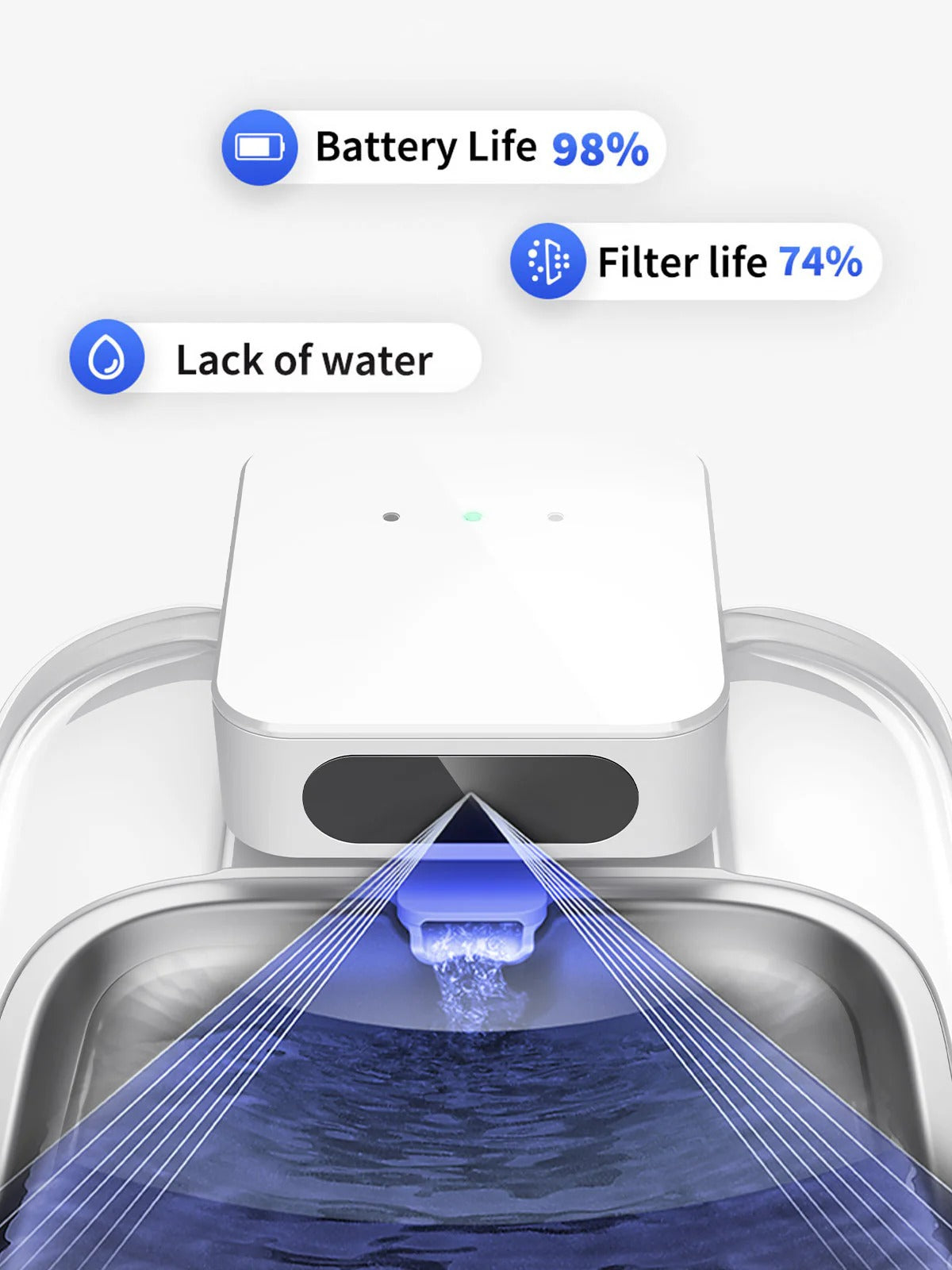 The water tray is made of food-grade 304 stainless steel, which naturally resists biofilm buildup and ensures hygienic, durable hydration. The water tank is made of food-grade ABS, combining safety with easy maintenance.