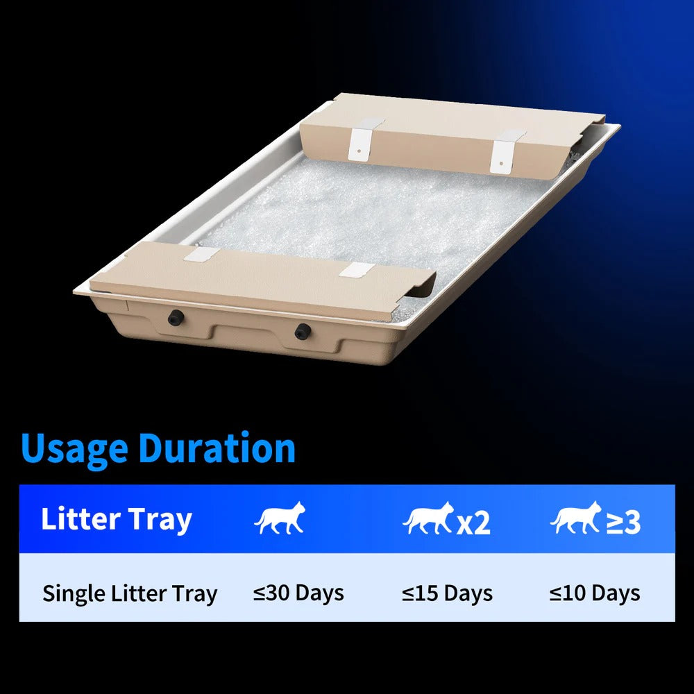 The tray features an integrated covering that locks in messes—no more urine leaks. The disposable litter tray makes cleaning easier than ever.