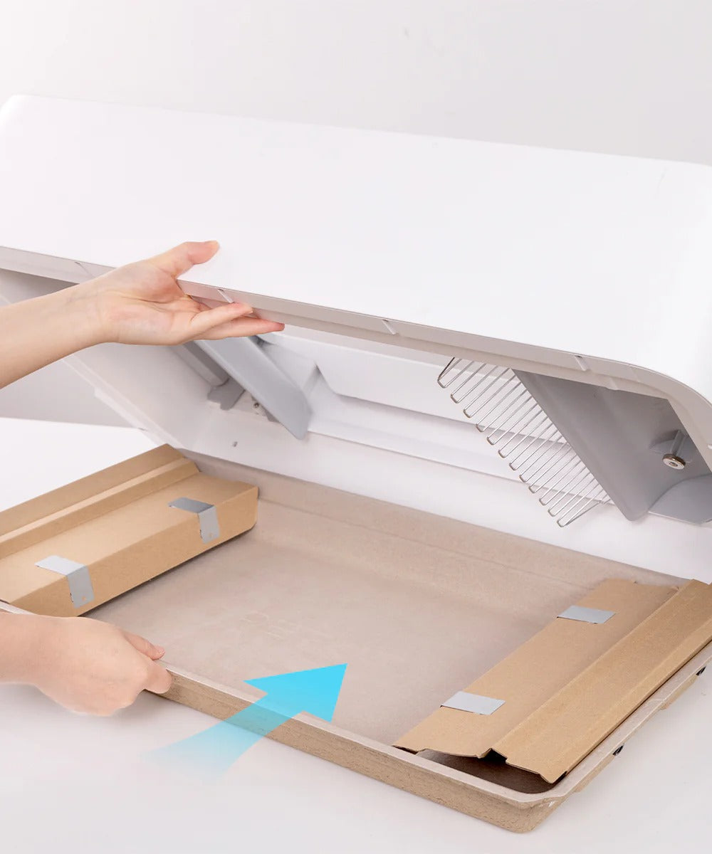 After installing the tray into the Purobot Crystal Duo, open the bag of crystal litter and take out the Urine Monitor Cat Litter Additive. Pour one bag of crystal litter into the tray, add the cat litter additive, and mix them evenly. Your cat can start using the litter box right away.
